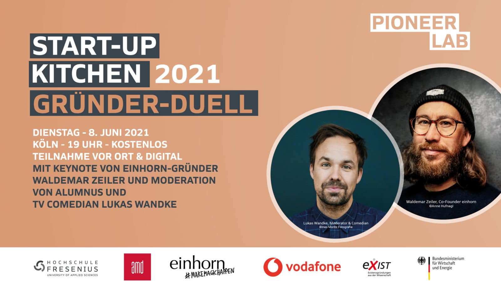 Einmal jährlich findet unser Event Start-up Kitchen an einem der neun Hochschulstandorte in Deutschland als hybrides Event statt. Zwei Gründer:innen-Teams treten gegeneinander an. Jedes Team besteht aus zwei Gründer:innen-Talenten, die Lust auf ein Start-up haben. Ihnen wird ein:e Mentor:in und Visualizer:in unterstützend zur Seite gestellt. Innerhalb von zwei Stunden erarbeiten sie mit einer vorgegebenen Idee eine fiktive Gründung. Am Ende der Show pitchen sie diese fiktive Gründung vor einer Jury. Das Siegerteam erwartet einen exklusiven Gewinn – jeweils einen Studienplatz im Cluster Masterstudiengang Entrepreneurship. Dazu gehören die Studiengänge Unternehmensgründung & Entrepreneurship (M.A.) sowie Business Development & Digital Innovation (M.A.).